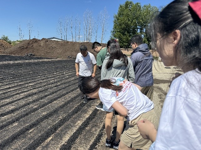 实践团到达菌菇渣发酵生产肥料的合作基地内蒙古九邦农业科技有限公司实地参观调研。陈总就原料获取、生产发酵、产品销售等方面进行了详细的介绍。该生产基地共有固体有机肥料、液体肥料两种主要生产线,会根据客户的不同需求订制含不同元素的肥料,公司每年有机肥生产量达10万余吨,液体肥3万余吨。